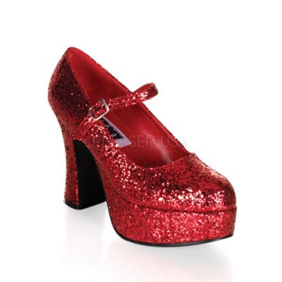 Lakierki damskie platformy brokat czerwone