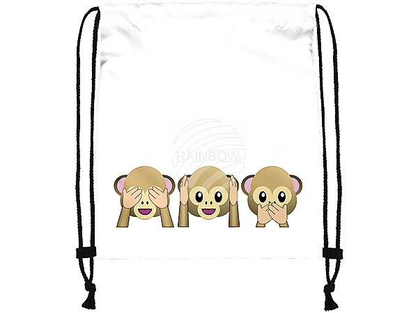 Gym bag Gymsac Emoticon Three monkeys white/brown