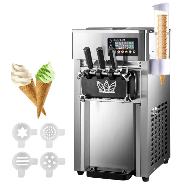 ˇ Wysoka i wydajna wydajnosc: dzieki markowej sprezarce o mocy 1200 W i wydajnej chlodziarce nasza maszyna do lodów miekkich chlodzi sie szybciej, jest cichsza i zuzywa mniej energii elektrycznej. Funkcja alarmu niedoboru przypomina o koniecznosci uzupel